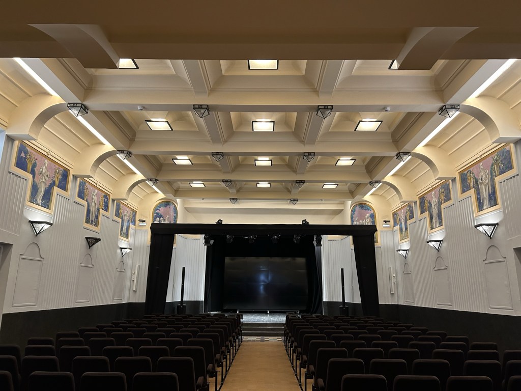 Het religieuze gebouw ( een kapel van de Jezuïeten) is in de 2 de wereldoorlog door bommen beschadigd geweest en later hersteld en ontwijd. Het doet nu dienst als concertzaal en inter-actief art-deco museum.