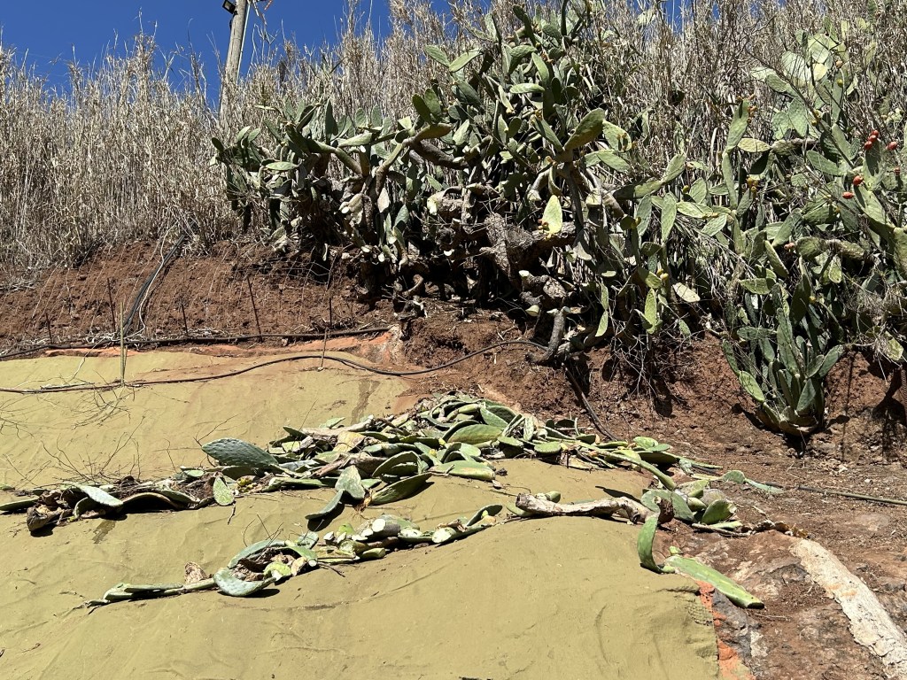Deze avond weer 2 u het gevecht aangegaan met de cactee op mijn dak, dat na 6 jaar verwaarlozing stevig was overgroeid .