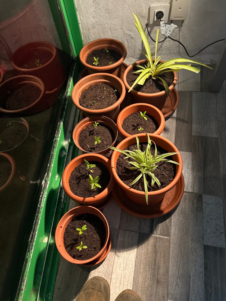Het was weer een prachtige dag en ik heb er van geprofiteerd om al mijn bloempotten en zaailingen te verpotten. Toen ik terug binnen kwam schrok ik mij een aap!