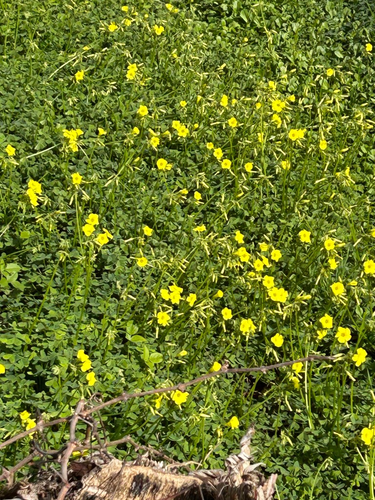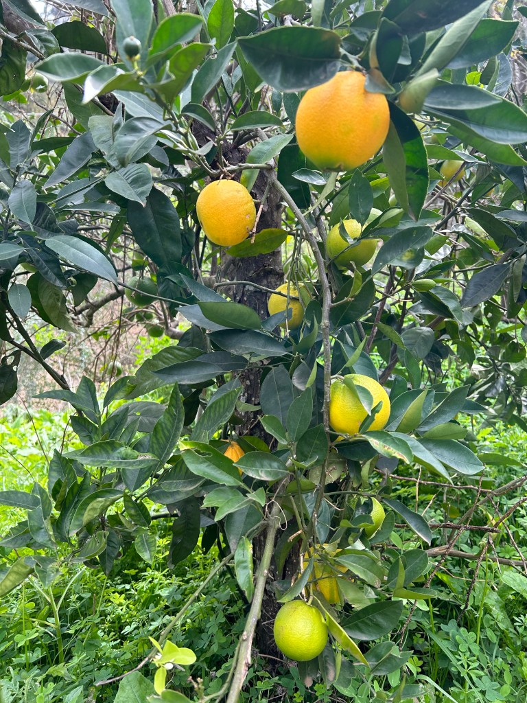 De sinaasappels zijn bijna rijp, de mandarijntjes bijna op en langs alle kanten schieten bloemen uit de grond.