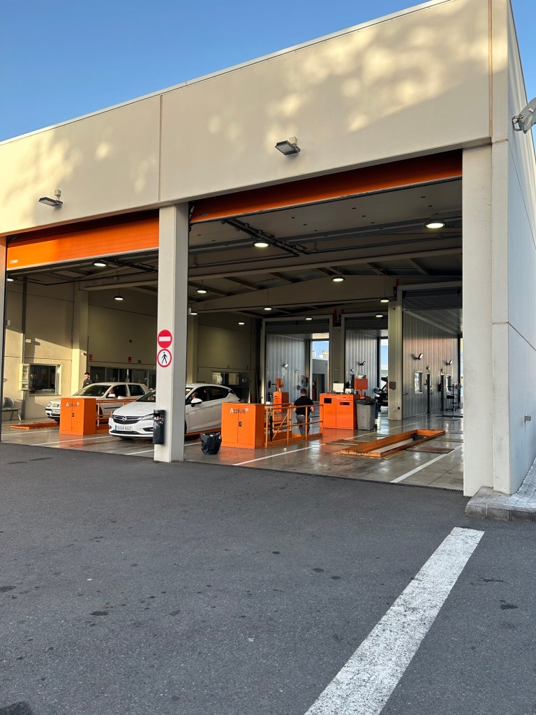 Bij het toekomen je aanmelden in bureau en 1 min later mag je de garage binnen rijden. Na controle van de deuren, gordels , ruitenwissers,sproeiers en pinkers mag je de auto verlaten en vooraan wachten op een bankje buiten.