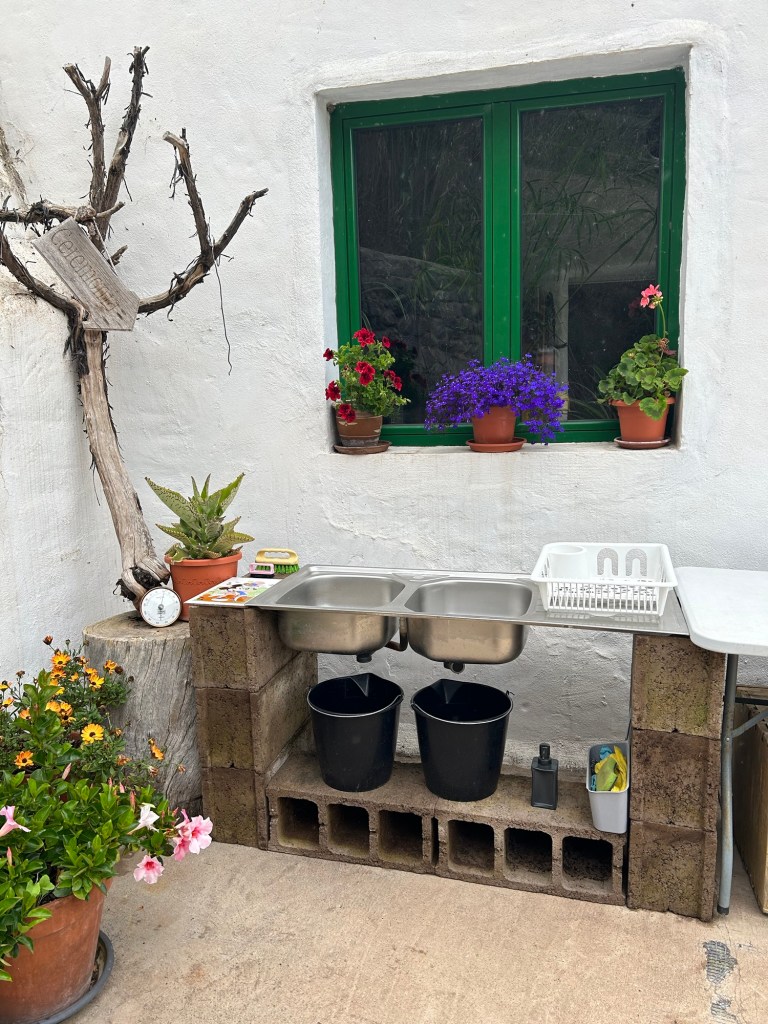 Buitenkeuken herbouwd met stenen en wat herschikt.