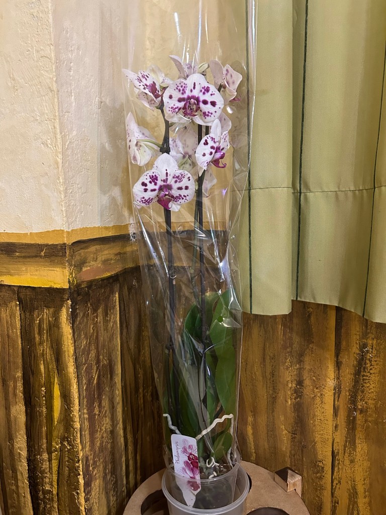 Het geluk is aan mijn kant want ik win een prachtige orchidee met de gratis tombola 😀